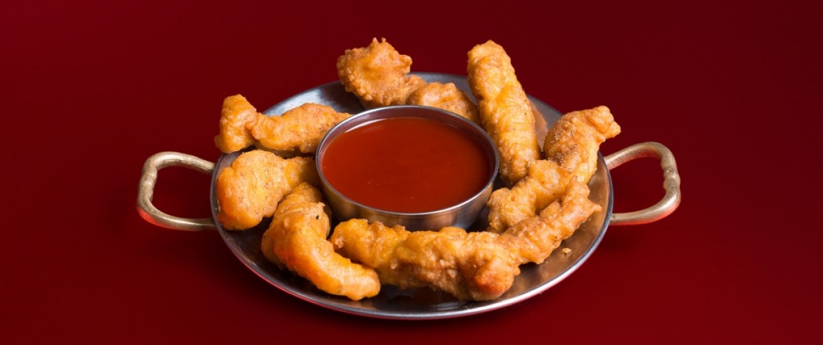 Нежные кусочки куриной грудки, обжаренные до хрустящей корочки в слегка приправленном специями кляре из муки турецкого гороха.