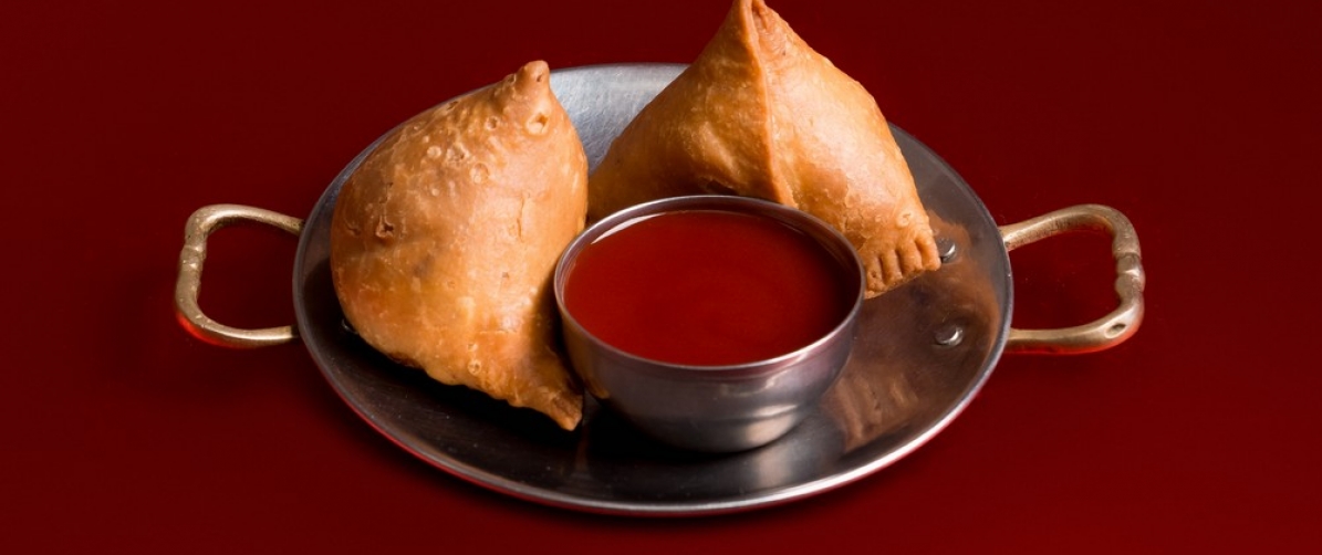 Индийская фирменная смесь картофельного пюре с изюмом, кешью тмином, обернутая в тонкое слоеное тесто и приготовленная во фритюре.